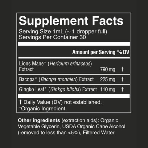 Our great-tasting organic Mindful Elixir is made from organic Lion’s Mane mushroom, Bacopa, and Gingko to help you stay centered and alert.* The Mindful Elixir is formulated to support optimal cognitive function — including focus, clarity, concentration, and memory — and a balanced mood.*